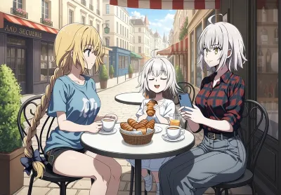 パリのカフェで楽しむ可愛いジャンヌ3人組☕