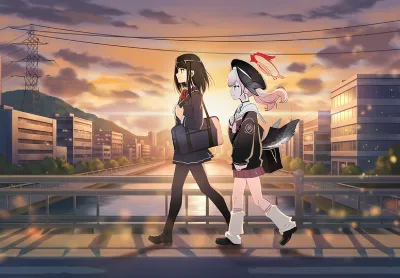動画で夕焼けの中で帰宅で一緒に歩く2人のコハル