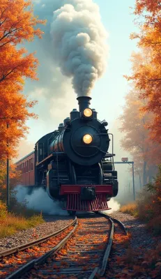 紅葉と蒸気機関車(石炭の日,クリーンコールデー,9月5日 記念日)