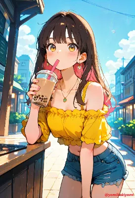 あーっ、道の真ん中で飲む、タピオカミルクティーは、美味しいわ🎵 えっ、許可とってるか?ですって!私が私に、許可したわ(笑)