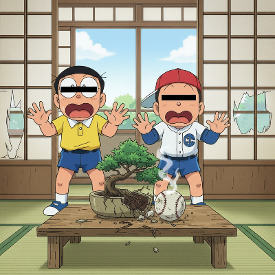 予の盆栽にボールをぶつけたのはどこのどいつなのじゃー!?
