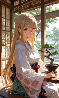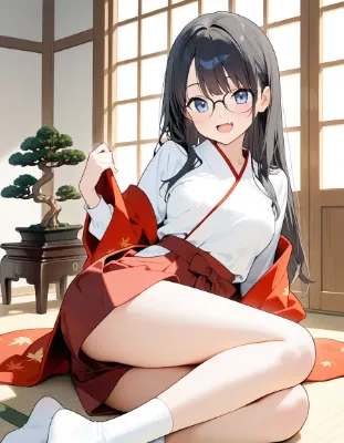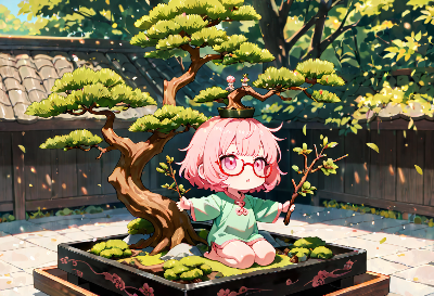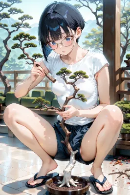 メガネっ娘さんと盆栽と