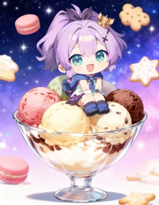 アイスクリームの上に乗る可愛いちびキャラジャベリン