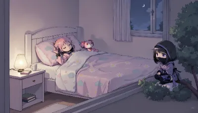 私は、まだ忍者としては、半人前。でも、ここで手柄をたてて、とーちゃんに褒めてもらうんだ♫