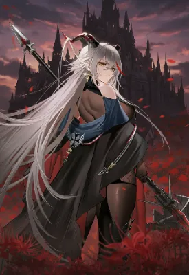 後ろ姿で槍を持っているアズールレーンのエーギル