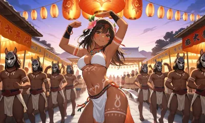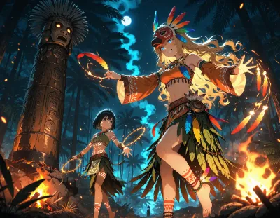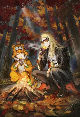焚き火で焼き芋を一緒に食べるテスカトリポカとジャガーマン🍠