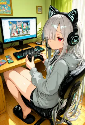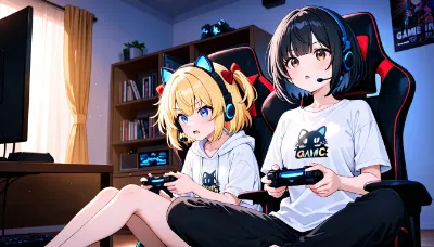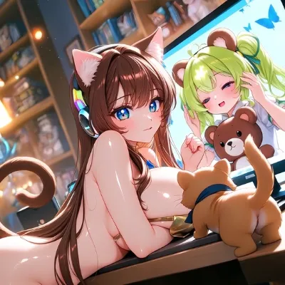 (コラボ)アイピク島のアゲハちゃんとヘッドセットで会話する猫又さん