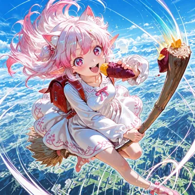 ミルは、幼馴染みの悪役令嬢ちゃんと、魔女のほうきに乗って遊んだ🎵