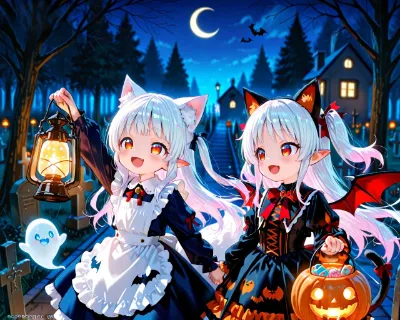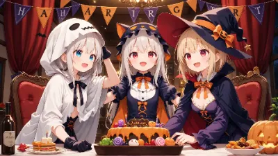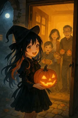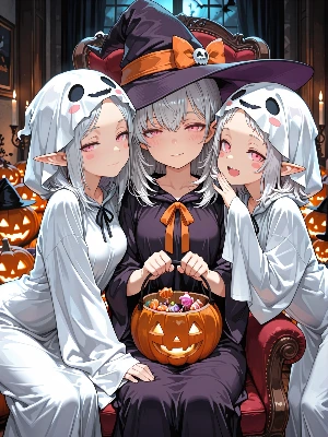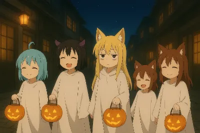 夜更かし想定内でお菓子をもらうリハーサルをする多種族