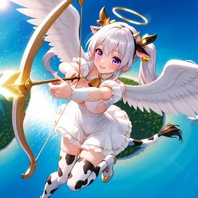 アイピク島上空でキューピットごっごをしている牛柄さん