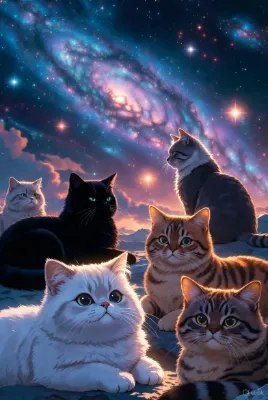 星世界で飯の時間まで待機する猫たち