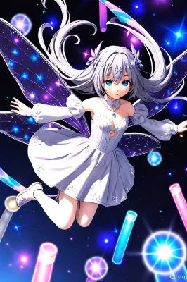 試験官のような何かが舞う宇宙空間を飛ぶ妖精