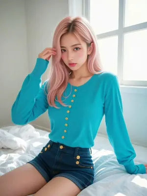 朝の光に染まる、静寂の中の彼女 — 淡いピンクの髪が語る、目覚めの余韻 / She Who Dwells in Morning Light — Whisper of Awakening in Pale Pink Strands