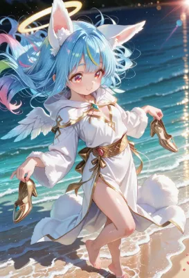 12枚)ビーチを歩く天使さん