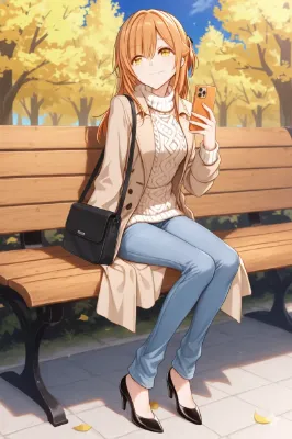 秋風のベンチで猫と過ごす少女の午後
