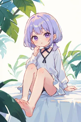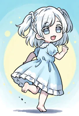銀髪少女の足元アピール