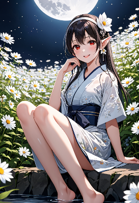 星空に舞う銀髪の少女の夜散歩