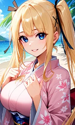 マリーちゃん ビーチで着物