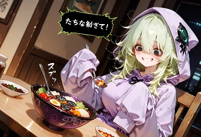 黒×紅の和風メイド猫耳娘が運ぶ、あったかお食事タイム