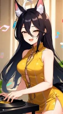 Grok先生に黒髪ケモ耳キャラを描いてもらうと時々出てくる某ウマの娘っぽいけどなんか違う系少女とターンテーブル