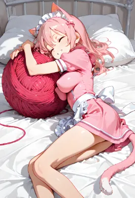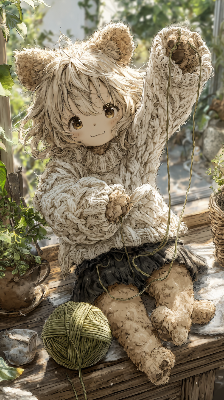 毛糸玉に戯れる猫耳少女