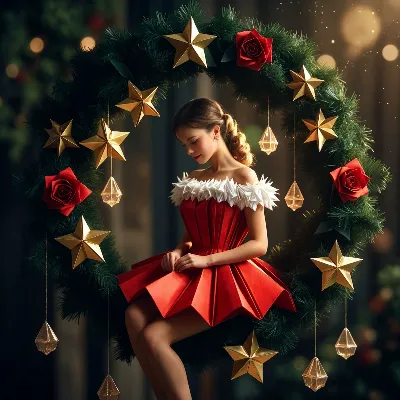 雪窓辺の折り紙少女の微笑み