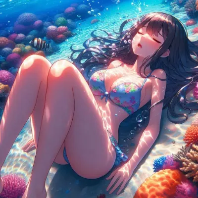 青髪少女のトロピカルビーチ冒険