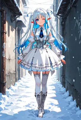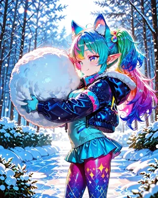 雪景色に輝く猫耳巫女