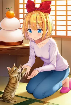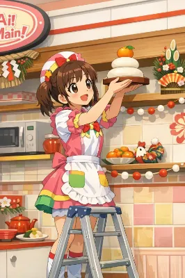 鏡餅飾り付け(おま好きガールズ×鏡餅)