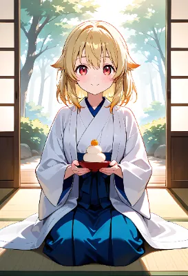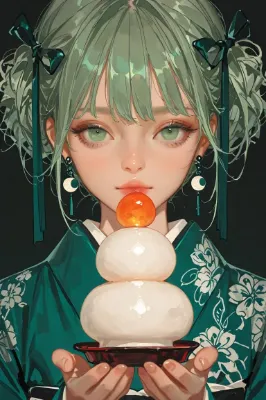 鏡餅 on head