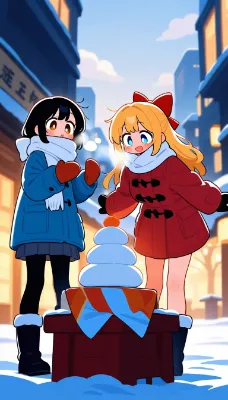 雪舞う神社で巫女の贈り物