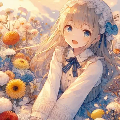 白髪エルフの花びら微笑み