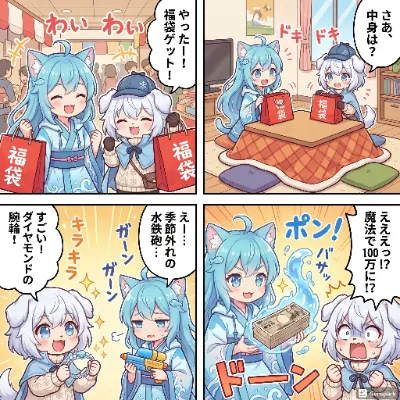 メイドのみなさんに、仕事始めに福袋をプレゼントしますわ!