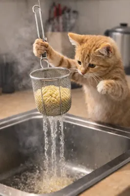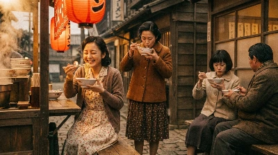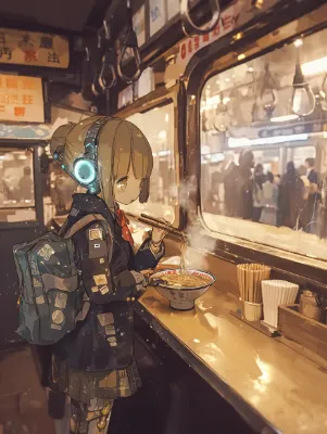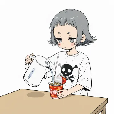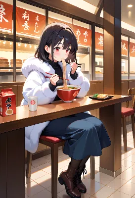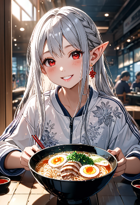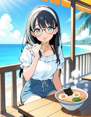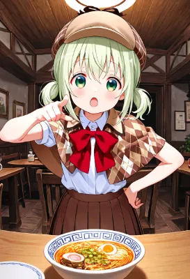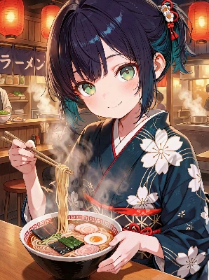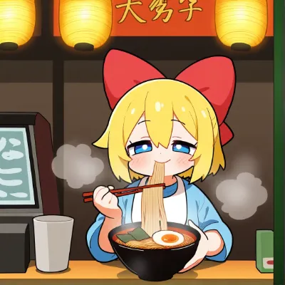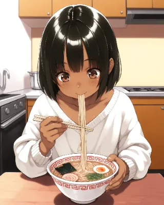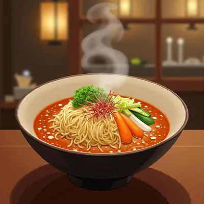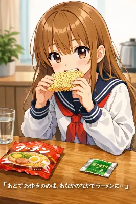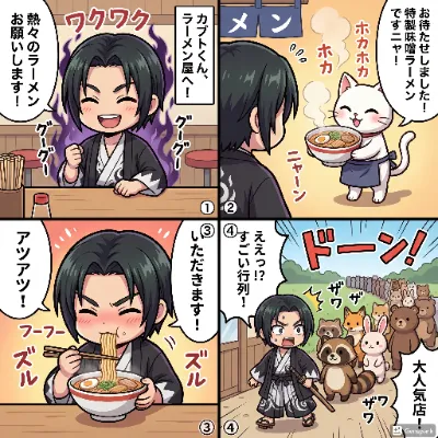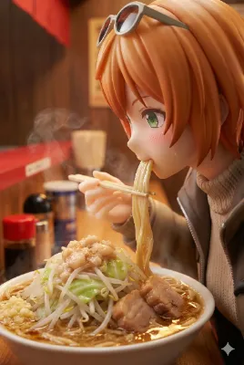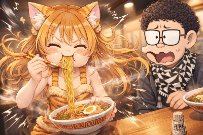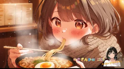 カブトくんが湯気が立っている熱々の味噌ラーメンを食べる!