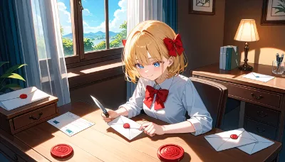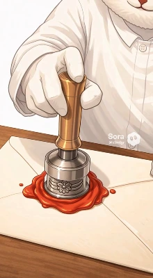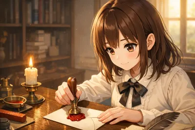 封蝋スタンプを教えるペロちゃんと感謝するアクアちゃん!