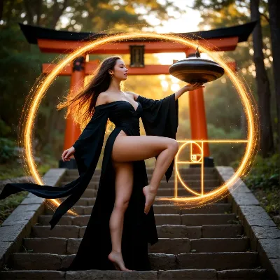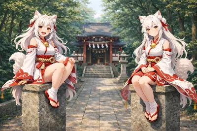 神社で輝く緑の精霊少女