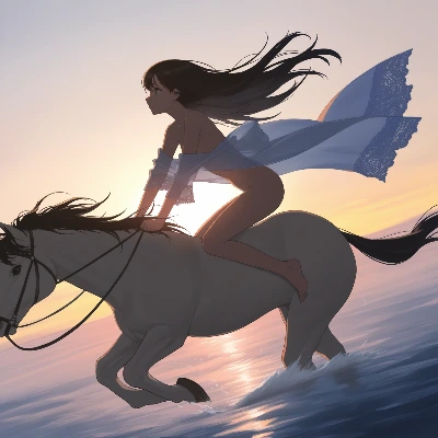 夕陽の海を駆ける自由の乙女