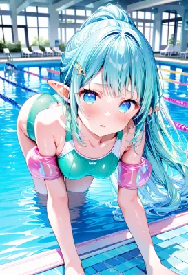 温泉に浸かる緑髪の少女