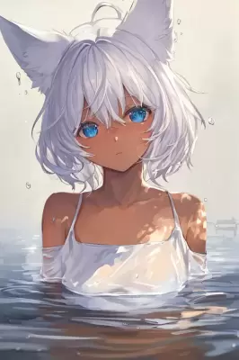 温泉でほんのり照れる青髪娘