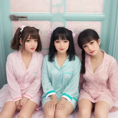 パジャマ姿の三人姉妹