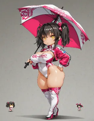 ピンク傘のレーシングガール
