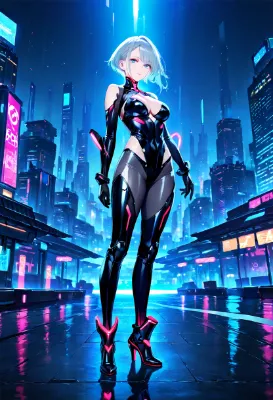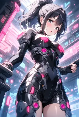 ネオン街のサイバー美女