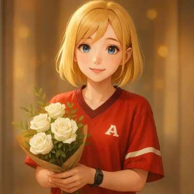 花束を抱くエルフメイドの優しい休日