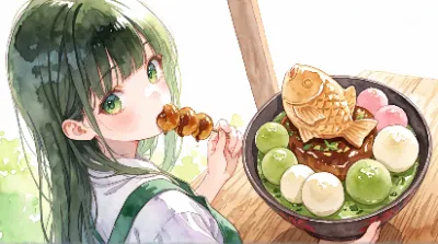 団子🍡を食べる少女