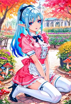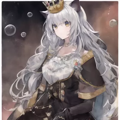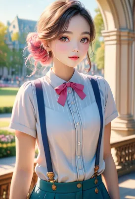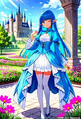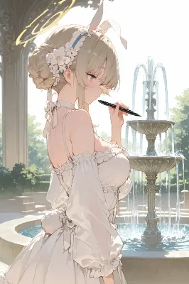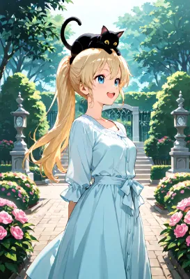 髪のひらめきが花の輪郭を撫でながら、城の影に沈んでいく