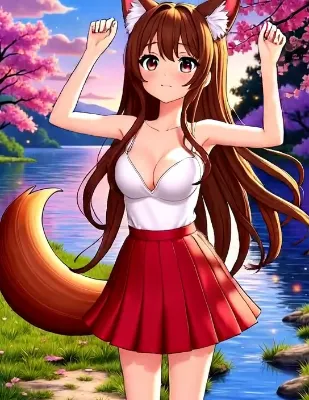 伝説の黄金のたい焼きを釣ろうとしたが魚が空を飛んでいて不意を突かれたカウガールの少女と友達の牛