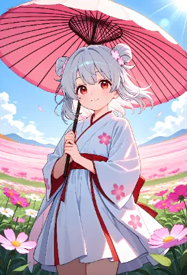 白猫と黒犬・コスモスと蝶々