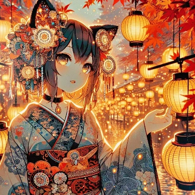 狐耳少女の夜桜祭り