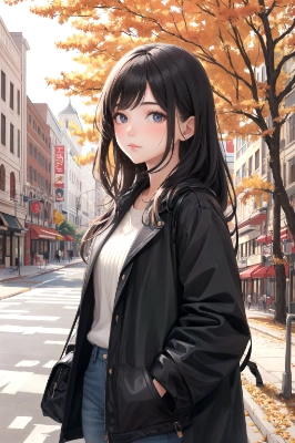 1女の子、秋、漢服、チャイナドレス、チャイナ髪、暖かい色、カウボーイショット、詳細な背景