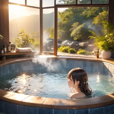 湯煙に包まれた美女の休息